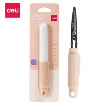 Kompaktowe nożyczki Deli EZ508 w bezpiecznym etui, różowe