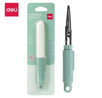 Kompaktowe nożyczki Deli EZ508 w bezpiecznym etui, zielone