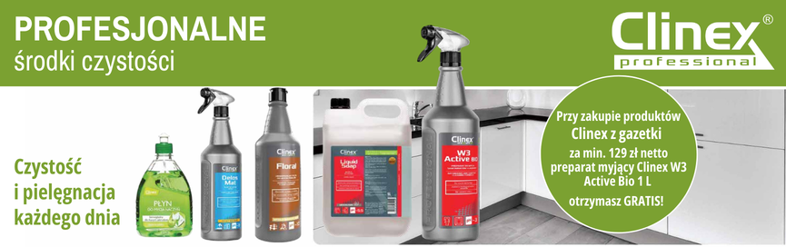 Przy zakupie produktów Clinex z gazetki za min. 129 zł netto a preparat myjący Clinex W3 Active Bio 1l otrzymasz GRATIS!