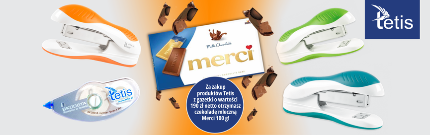 Za zakup produktów Tetis z gazetki o wartości 150 zł netto otrzymasz czekoladę Merci 100 g.