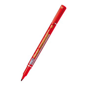 Marker permanentny ze ściętą końcówką. Grubość linii pisania w zakresie 1,2-4,5 mm. Nadaje się do wszystkich powierzchni. Nie zawiera substancji trujących. Do codziennej pracy w biurze, magazynie, sklepie.