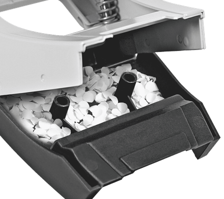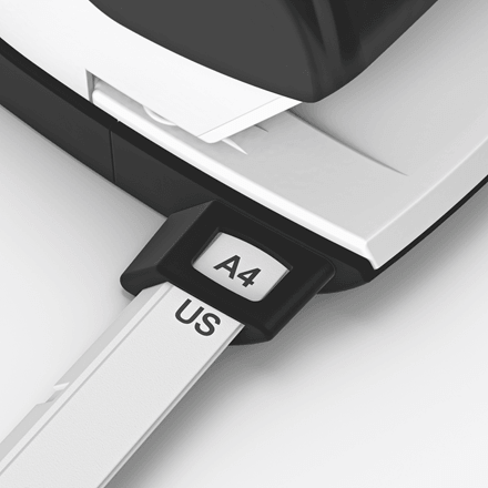 - wyraźne oznaczenia formatu i wytrzymała prowadnica zapewniają perfekcyjne wyrównanie papieru