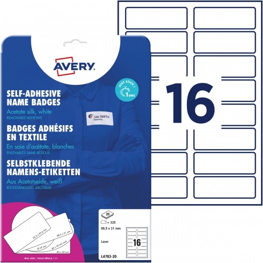 • Samoprzylepne identyfikatory wykonane ze sztucznego jedwabiu.