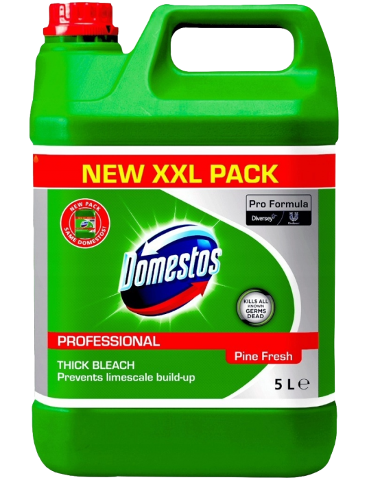 Domestos Professional Pine Fresh jest zagęszczonym płynem do mycia i dezynfekcji urządzeń i powierzchni w pomieszczeniach sanitarnych oraz do mycia i dezynfekcji powierzchni w szpitalach i innych placówkach służby zdrowia. Produkt polecany jest również do wybielania tkanin białych. Dzięki zagęszczonej konsystencji, preparat dłużej przywiera do czyszczonej