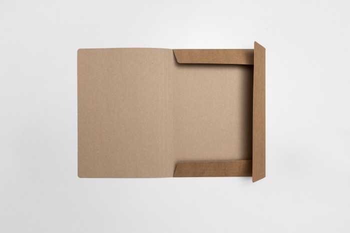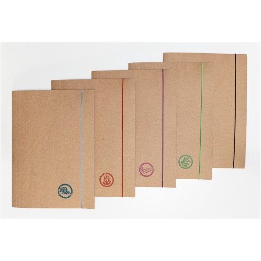 Teczka z gumką wykonana z ekologicznej jasno brązowej tektury typu Kraft podlegającej 100% recyklingowi.