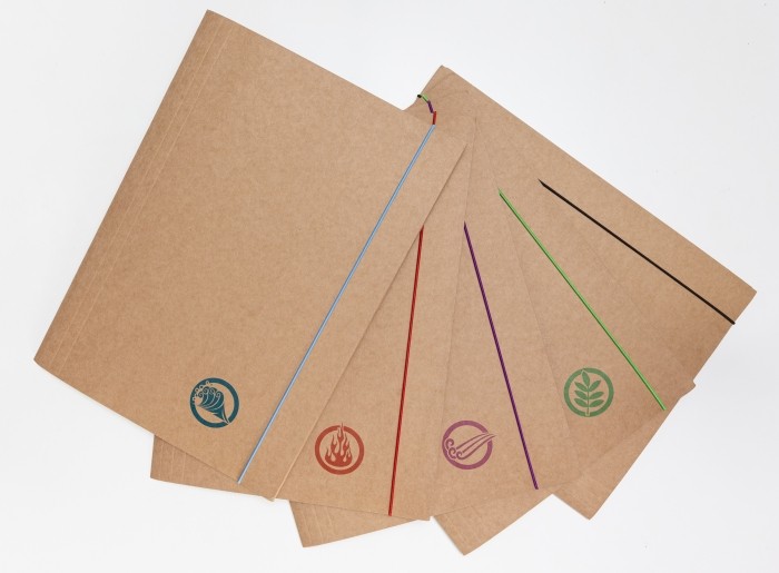 - okładka z motywem graficznym: ziemia, ogień, powietrze, woda lub bez nadruku