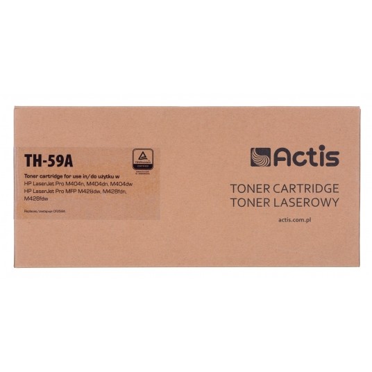 Actis TH-59A Toner (zamiennik HP CF259A; Supreme; 3000 stron; czarny) z chipem monitorującym poziom tonera. Zalecamy wyłączenie aktualizacji oprogramowania drukarki.. Pasuje do urządzeń: HP LaserJet Pro: M304a, M404. HP LaserJet: M406 Enterprise. HP LaserJet MFP: M430 Enterprise. HP LaserJet Pro MFP: M428.