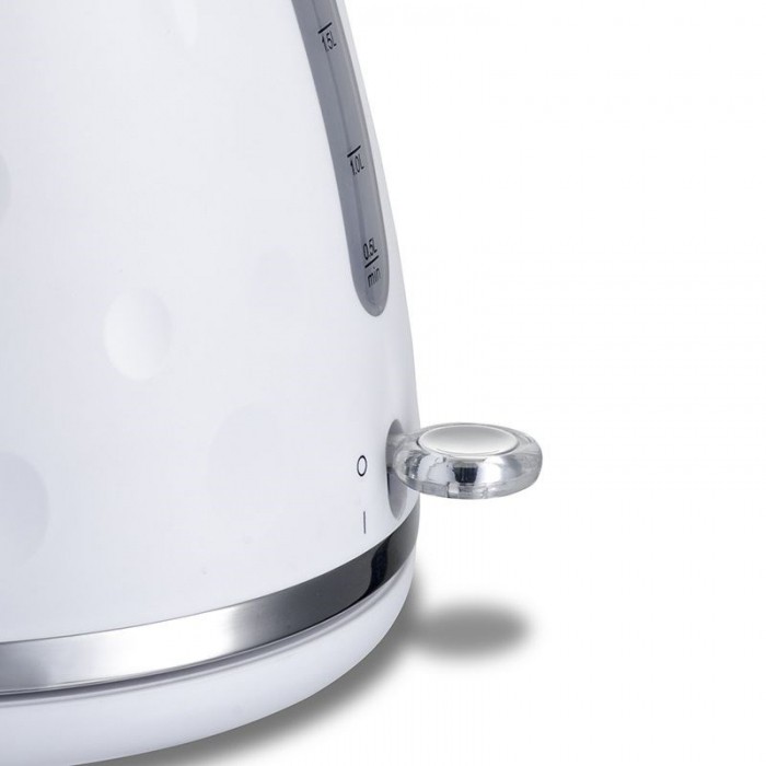 Czajnik Eldom C245SB został wykonany z zastosowaniem wysokiej jakości podzespołów marki STRIX Technology. Posiada obrotową podstawę, potrójne zabezpieczenie przed przegrzaniem oraz filtr siatkowy, który nie dopuszcza do przedostawania się kamienia oraz innych mechanicznych osadów. Duża pojemność (1,7 litra) oraz wysoka moc sprawiają, że w czajniku można szybko zagotować sporą porcję wody. Poziom napełnienia wodą widoczny jest dzięki praktycznemu wskaźnikowi, a lampka kontrolna sygnalizuje pracę urządzenia.