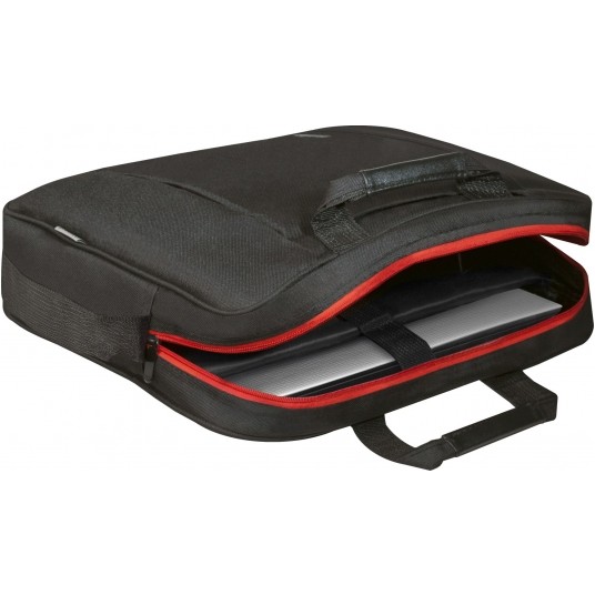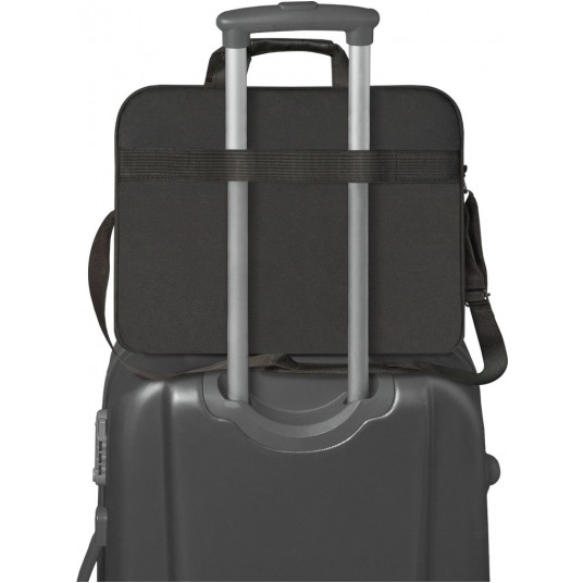 Wzmocnione zabezpieczenie przedziału na notebooka. Kieszeń zewnętrzna przednia na zamek błyskawiczny. Nadaje się do dokumentów w formacie A4. Regulowany pasek na ramię z możliwością szybkiego odłączenia. Dodatkowa kieszeń na tablet. Uchwyty ze sztucznej skóry. Możliwość mocowania na uchwycie walizki-wózka. Pewna ochrona przed kurzem i uszkodzeniami