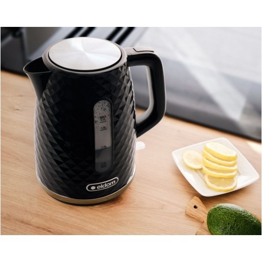 Czajnik Eldom Elli C280C z serii Diamond Collection ma czarną obudowę wykonaną z eleganckiego tworzywa sztucznego. Duża pojemność 1.7 l pozwoli na zagotowanie większej ilości wody. Model zasilany jest sieciowo, a elementem grzejnym jest ukryta grzałka. Zaletą jest także filtr antyosadowy. Wysoka moc 2200 W umożliwia szybkie zagotowanie dużej ilości wody, co wpływa na maksymalny komfort użytkowania.