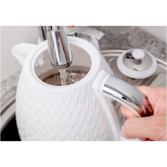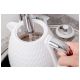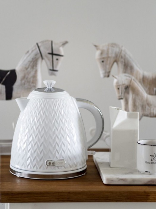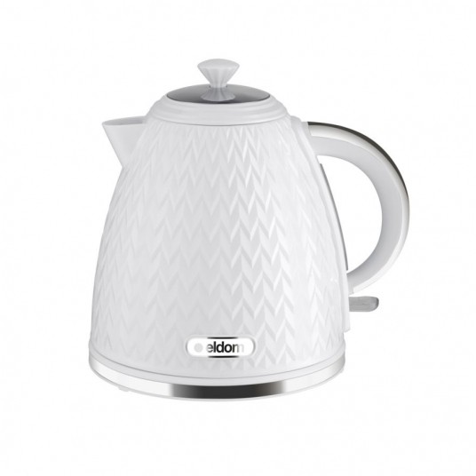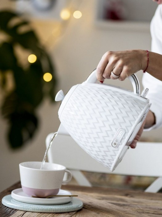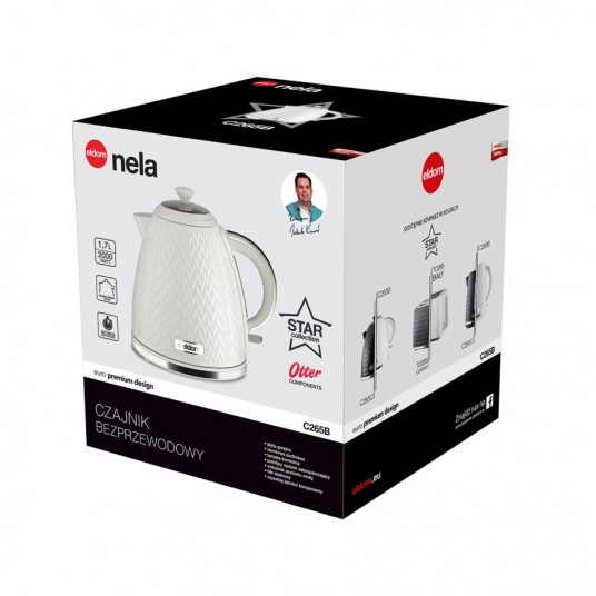 Czajnik Eldom C265B NELA o mocy 2000W to efektowny design i niezawodne działanie. Został wykonany z wysokiej jakości podzespołów OTTER i w mig zagotuje od 0,5 do 1,7 L wody. Ma wygodny uchwyt, obrotową podstawę z miejscem na nawinięcie nadmiaru przewodu, wskaźnik poziomu wody oraz filtr siatkowy, który zatrzymuje cząsteczki kamienia.