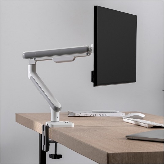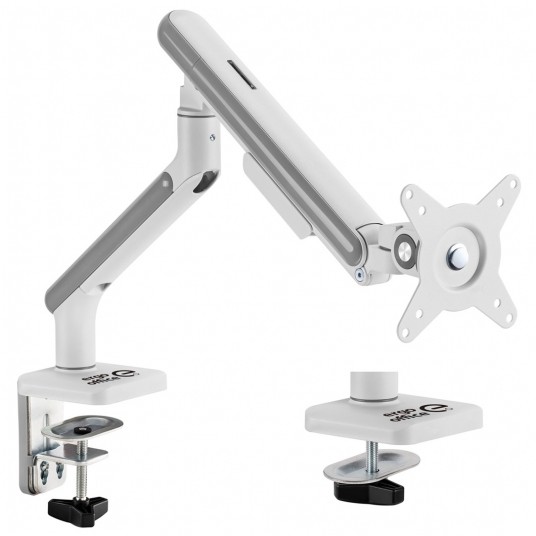 Uniwersalny uchwyt do monitora LCD lub LED z możliwością montażu do blatu biurka lub otworu na przewody. Uchwyt przeznaczony jest do monitorów o przekątnej ekranu od 17" do 32" i maksymalnej wadze do 9 kg. Uchwyt ER-751 zapewnia duży komfort pracy, optymalizuje ergonomię oraz widoczność, poprzez regulację kąta nachylenia, obrotu, wysokości etc. Dzięki temu możesz dostosować pozycję monitora w pełni do swojego stanowiska pracy. Do uchwytu bez problemu przymocujemy ekran w standardzie VESA: 75x75, 100x100 mm. Uchwyt wyposażony jest w sprężynę gazową umożliwiającą płynną regulację wysokości monitora. Dzięki temu można łatwo dostosować położenie monitora do swoich preferencji, podnosząc go lub opuszczając w zaledwie kilka sekund. Uchwyt wykonany jest z trwałych materiałów, które gwarantują stabilność i bezpieczeństwo monitora. Solidna konstrukcja pozwala na umieszczenie monitorów o przekątnej do 32'' bez obaw o ich bezpieczeństwo. Nowoczesny i schludny wygląd uchwytu sprawia, że doskonale komponuje się z większością biurowych lub domowych wnętrz. Możliwość regulacji stopnia nachylenia od -40 do +40 stopni