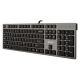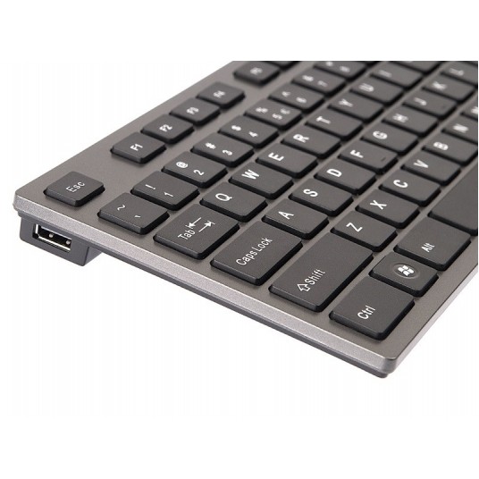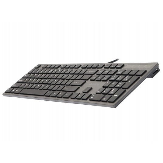 Ultra płaska i kompaktowa klawiatura. Nowoczesny styl 'ipodowy'. To co ją wyróżnia to aż 2 dodatkowe porty USB 2.0, po jednym z każdej strony. Ponadto technologia nożycowa, stosowana w notebookach oraz szeroko rozstawione wygodne klawisze. Pełnowymiarowa z blokiem numerycznym