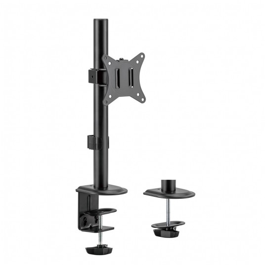 Uniwersalny uchwyt biurkowy służący do montażu monitorów LCD różnych marek o wadze do 9 kg i przekątnej ekranu od 17" do 32". Podany rozmiar ekranu jest tylko propozycją. Na uchwyt można zamontować większy telewizor, gdy nie przekracza maksymalnej wagi oraz mieści się w podanym standardzie VESA. Do uchwytu bez problemu przymocujemy ekran w standardzie VESA: 75x75, 100x100 mm. Uchwyt umożliwia zarówno orientację pionową, jak i poziomą monitora, dostosowując się do różnych potrzeb oglądania. To idealne rozwiązanie zarówno dla standardowego przeglądania dokumentów, jak i do pracy graficznej czy rozrywki. Przelotki na przewody pomagają w prowadzeniu kabli w uporządkowany sposób. Dzięki temu zmniejsza się bałagan na biurku, co przekłada się na bardziej schludny wygląd i bardziej zorganizowane miejsce pracy. Możliwość swobodnej regulacji wysokości monitora pozwala na osiągnięcie optymalnej ergonomicznej pozycji, co jest kluczowe dla komfortu oczu i zdrowia użytkownika. Zdejmowana płyta VESA ułatwia i przyspiesza proces instalacji monitora na uchwycie. To praktyczne rozwiązanie dla osób, które chcą szybko i łatwo zamontować lub zdjąć swój monitor.