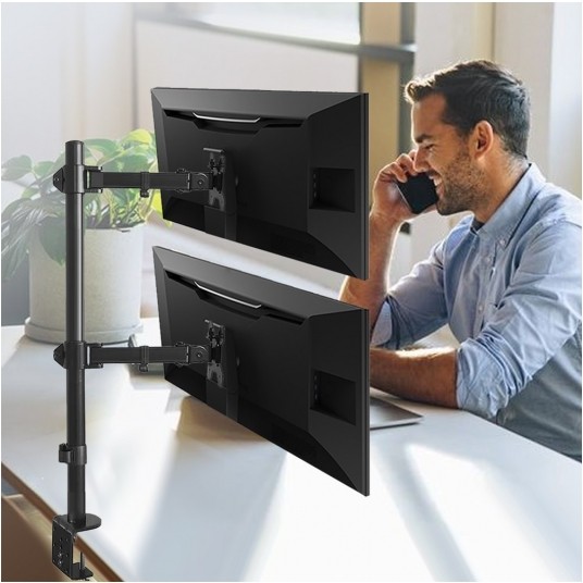 Uniwersalny uchwyt biurkowy Maclean MC-967 to praktyczne rozwiązanie dla osób pracujących na dwóch ekranach jednocześnie. Pozwala zwiększyć przestrzeń roboczą, poprawić ergonomię i zwiększyć wydajność pracy. Uchwyt przeznaczony jest do montażu 2 monitorów różnych marek o wadze do 9 kg i przekątnej ekranu od 13 do 27". Do uchwytu bez problemu przymocujemy ekrany w standardzie VESA: 75x75, 100x100 mm. MC-967 umożliwia użytkownikowi dostosowanie kąta nachylenia oraz wysokości każdego monitora, co pozwala na optymalne ustawienie ekranów względem siebie i ergonomiczne ustawienie dla użytkownika. Przelotki na przewody pomagają w prowadzeniu kabli w uporządkowany sposób. Ponadto jest kompatybilny z VESA (100 x 100 mm , 75 x 75 mm i 40 x 40 mm).