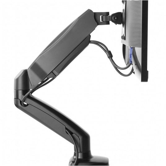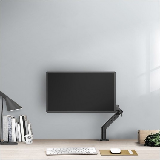 Uniwersalny uchwyt biurkowy oparty na sprężynie gazowej, nie tylko gwarantuje najwyższy poziom wykonania, ale także niezwykłą trwałość i bezpieczeństwo zawieszonego na nim sprzętu. Wbudowana regulowana sprężyna gazowa umożliwia swobodny i płynny ruch monitora w dowolnym kierunku bez użycia siły. Model MT014 to doskonały wybór dla posiadaczy monitorów o maksymalnej przekątnej 32 cali oraz wadze do 8 kg. Zastosowana konstrukcja umożliwia zamontowanie monitorów typu CURVED.