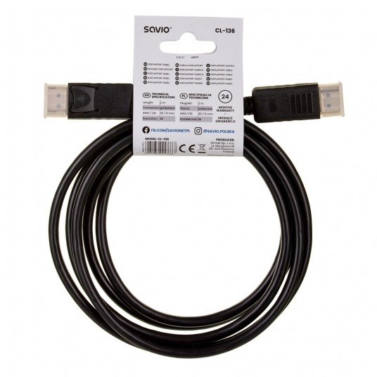 Kabel DisplayPort (M) – DisplayPort (M) v1.2 2m CL-136 to niezawodne rozwiązanie do transferu audio-wideo. Kabel wykonany jest z przewodów z miedzi beztlenowej OFC o wysokim stopniu czystości (99,96%) i posiada pozłacane końcówki, co zapewnia stabilne i niezawodne połączenie. Kabel Savio DisplayPort obsługuje rozdzielczość 4K, dzięki czemu transfer wideo i audio będzie szybki, bez zakłóceń i utraty jakości obrazu.