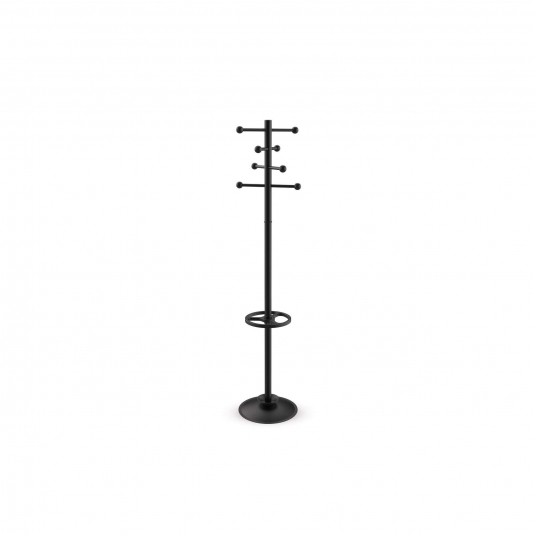 Wieszak podłogowy MAULsaphir w kolorze czarnym. Doskonałe połączenie wysokiej jakości, funkcjonalności i eleganckiego designu. Ten nowoczesny, minimalistyczny produkt doskonale wpasuje się w każde wnętrze. Solidna stalowa podstawa zapewnia stabilność i trwałość, gwarantując bezpieczeństwo i wygodę użytkowania. Wieszak wyposażony jest w 8 wytrzymałych, rozsuniętych drążków na ubrania, dla optymalnej przestrzeni na różne elementy garderoby. Dodatkowo posiada stojak na parasole z tacką ociekową, chroniący podłogę przed wilgocią. Wykonany z wysokiej jakości metalu i tworzywa ABS - zapewnia wyjątkową trwałość i odporność na codzienne użytkowanie. Doskonale sprawdzi się w biurach, korytarzach, salach konferencyjnych oraz innych pomieszczeniach. Łatwy montaż – wszystkie niezbędne narzędzia są dołączone, a sam proces składania zajmuje zaledwie kilka minut. Gwarancja 2 lata.