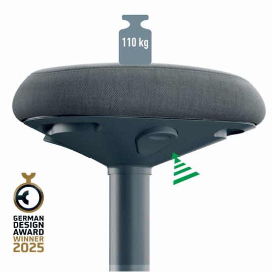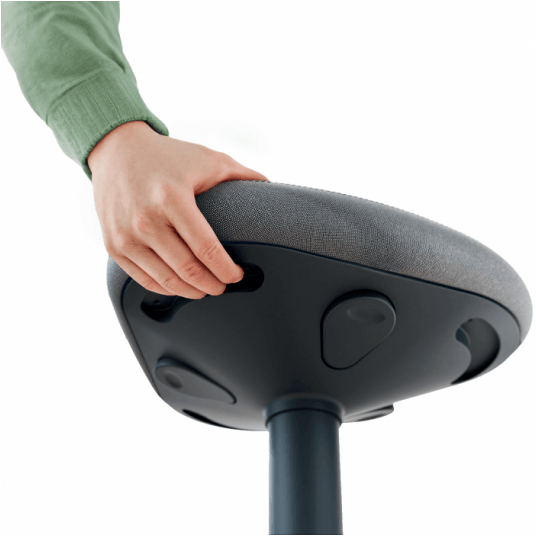 Stołek do aktywnego siedzenia Leitz Ergo posiada wyjątkowe, komfortowe siedzisko z pianki o podwójnej gęstości (DDF), z solidnym, ergonomicznie ukształtowanym rdzeniem. Siedzisko o trójkątnym kształcie, podobnie jak w przypadku stołka siodłowego, rozkłada ciężar równomiernie na całej miednicy i jest otoczone wyściółką z miękkiej pianki, aby zmniejszyć nacisk na uda i nogi. Zaprojektowane w celu zapewnienia komfortu siedzisko o grubości 9 cm zachęca do przyjmowania bardziej wyprostowanej pozycji, zapewniając wyjątkowo wygodne siedzenie, jak na poduszce. Ten ergonomiczny stołek z regulacją wysokości, opracowany został we współpracy z Instytutem Zdrowia i Ergonomii (IGR) w celu zapewnienia aktywności podczas siedzenia przy biurku w domu lub w pracy. Zaokrąglona podstawa stołka zachęca do ruchu polegającego na obracaniu się i kołysaniu, co wzmacnia plecy i kręgosłup oraz zapobiega bólom mięśni. Łatwa i płynna regulacja wysokości w zakresie 17 cm (47-64 cm) - wystarczy nacisnąć przycisk pod siedziskiem, aby ustawić je na odpowiedniej wysokości. Siedzisko posiada pokrowiec wykonany z tworzywa w 100% pochodzącego z recyklingu oraz antypoślizgową gumową podstawę, zapobiegającą ślizganiu się stołka oraz chroniącą podłogę. Lekka konstrukcja i uchwyt do przenoszenia pod siedziskiem ułatwiają przenoszenie stołka z pokoju do pokoju i umożliwiają przechowywanie go pod biurkiem. Ten nowoczesny i minimalistyczny stołek do siedzenia idealnie sprawdzi się w domu lub w biurze, zwiększając komfort i wydajność pracy. Naszą misją jest dostarczanie rozwiązań, które umożliwiają ludziom rozwój w pracy i poza nią, z zachowaniem zdrowia psychicznego i dobrego samopoczucia fizycznego. Połącz stołek z innymi produktami Leitz Ergo, aby zaprojektować dostosowane do Twoich indywidualnych potrzeb stanowisko pracy w pozycji siedzącej i stojącej. Bądź aktywny i POCZUJ SIĘ DOBRZE dzięki Leitz.