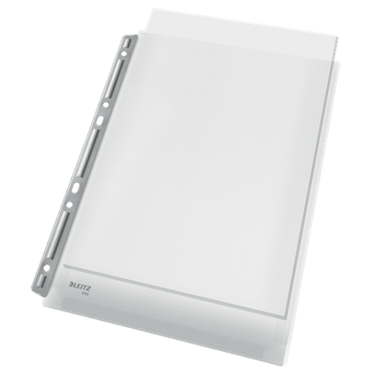 Wzmocniony, metalowy pasek i poszerzony o 20 mm brzeg zapewniają bezpieczne przechowywanie obszernych dokumentów i katalogów. Perfekcyjnie nadają się do wpięcia do segregatorów.